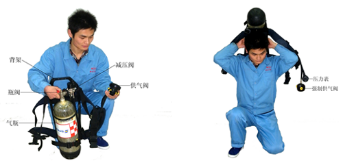 7.应按规定的使用步骤佩戴呼吸器,严禁佩戴完毕后再打开气瓶瓶阀。