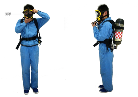 ※检测面罩的气密性:用手掌封住供气口吸气,如果感到无法呼吸且面罩充分贴合则说明密封良好。