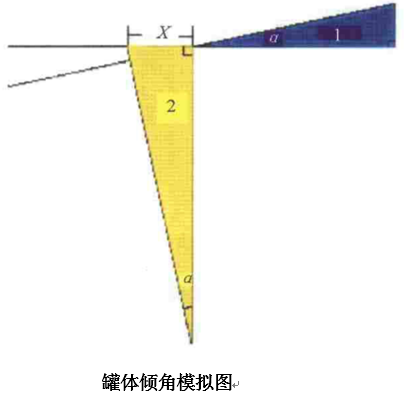 根据相似三角形1和2,由倾角度数和罐体的高度得到罐体倾斜值X=罐体高度Xtanα 。