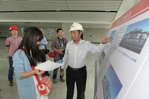 “山舞银蛇腾巨龙,最美高铁嵌明珠!”合福铁路客运专线开通在即,4月17日至18日,闽赣两省20家主流媒体记者组成的采访团密集采访中国铁建十七局集团建筑公司承建的京福铁路客专闽赣段站房3标项目,一名记者惊叹。