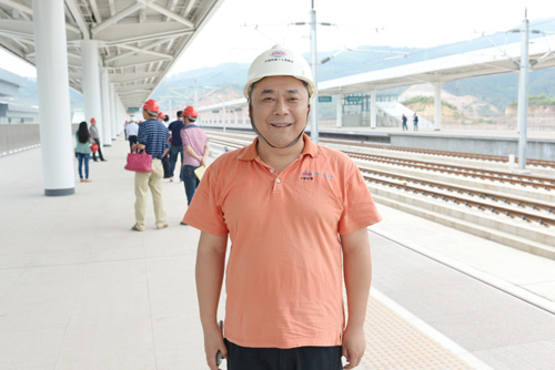 图为常士杰在中国铁建十七局集团建筑公司京福客专项目建瓯西站。(赵桂军 摄)