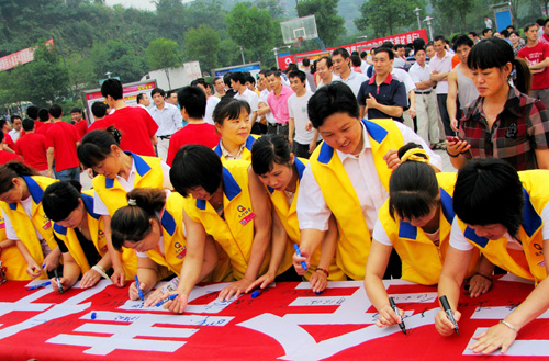 图为该矿协管委协管员在矿安全活动上签名