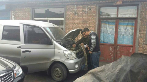 汽车司机积极检查车况,准备第二天出工。