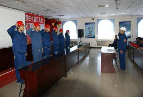 班前会第二步:安全宣誓(全体起立进行安全宣誓)。
