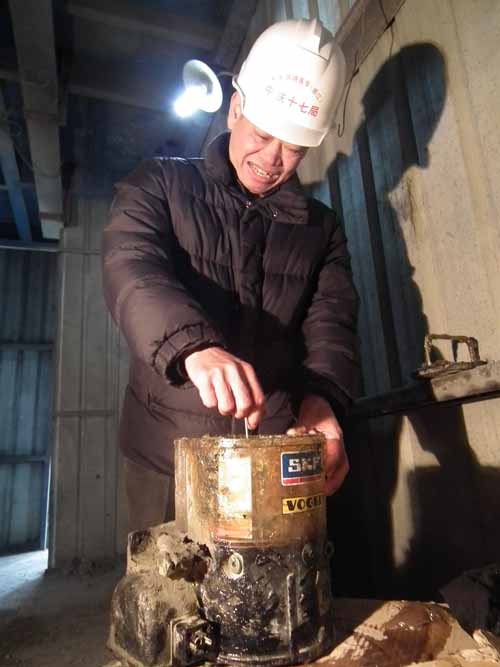 王显林更勤于总结机械设备在生产过程中出现的各种问题与缺陷,并进行加工改装。通过将运料斗液压系统泵改装成液压站,布料机搅拌系统增装加油泵的办法,杜绝了混凝土无法布出的难题。