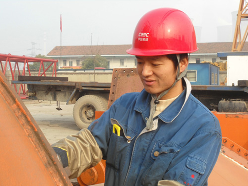 他将这种吃苦耐劳,勇于拼搏的精神发扬光大,在清明小长假期间先后完成在修履带吊的液压系统的大修,淮南垃圾电厂10吨龙门吊的现场抢修等多项大活、急活。图为李春工作照