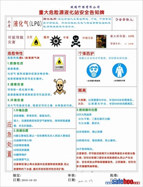 液化气站易燃易爆,是危险区域,树立安全告知牌,以告知来人注意有关安全事项,以保障区域安全。