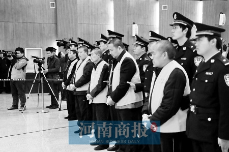 对5名被告人的宣判,是在昨日下午2时进行的。时间到点后,在法警护卫下,5名被告依次走进审判庭。此时,诸多媒体记者早已架好“长枪短炮”。被告走进审判庭后,向记者席上看个不停。
