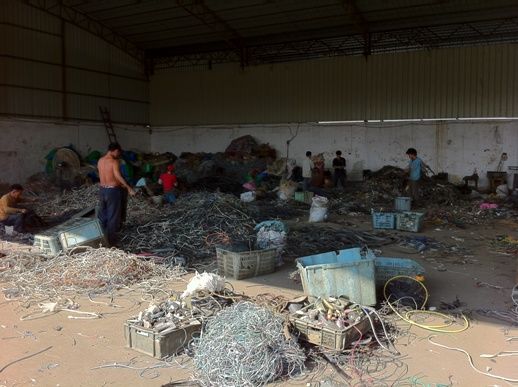 “这是拆解加工再生铜的小作坊,全村有300多家。”村民梁伯告诉南方农村报记者,一间低矮平房和一块不大的水泥空地,便可组成一家工厂。在石角镇,类似的小作坊多达1100多家,从业者4万多人。