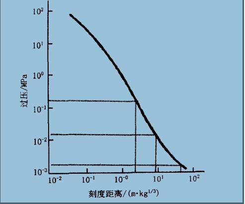 根据乙炔的W TNT及爆炸过压曲线图可计算距离不同爆炸源处的爆炸过压值: