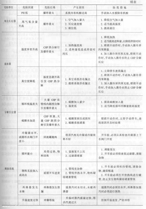 由于装置生产出现不正常情况,如误操作,设备故障,仪表失灵,公用系统故障等,都会造成装置处于危险状态。特别是烃化、氧化、分解、加氢反应,
