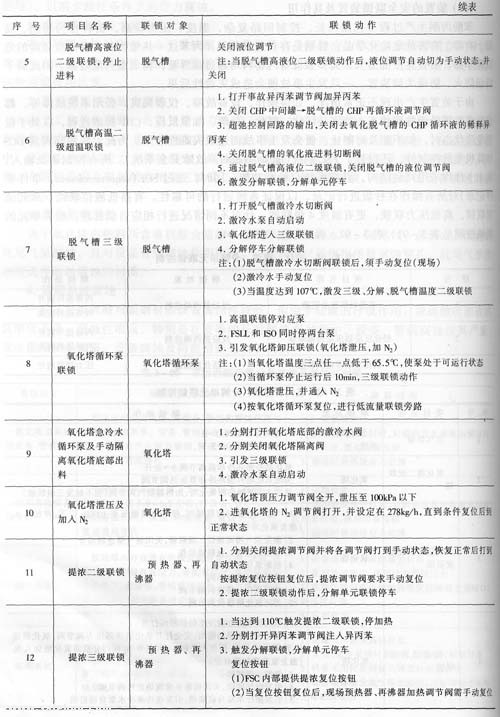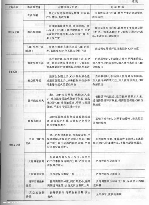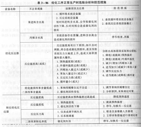 ①严格控制氧化进料异丙苯的纯度,异丙苯中各种有机杂质及无机物都对氧化反应不利,并会引起各种事故。因此对异丙苯必须严格地进行分析和管理。