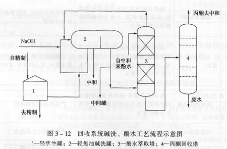 回收系统碱洗、酚水工艺流程和循环烃、加氢反应工艺流程示意图如图
