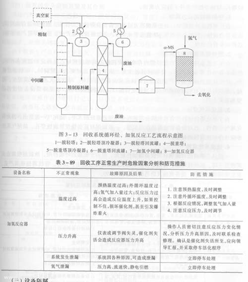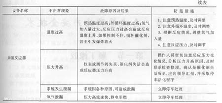 回收系统主要保护加氢催化剂,严防空气进入系统,造成飞温。严防氢气泄漏,氢气压力高,一旦泄漏很容易被静电引燃,酿成重大事故。常见事故及其处理对策列于表 3 — 95 。
