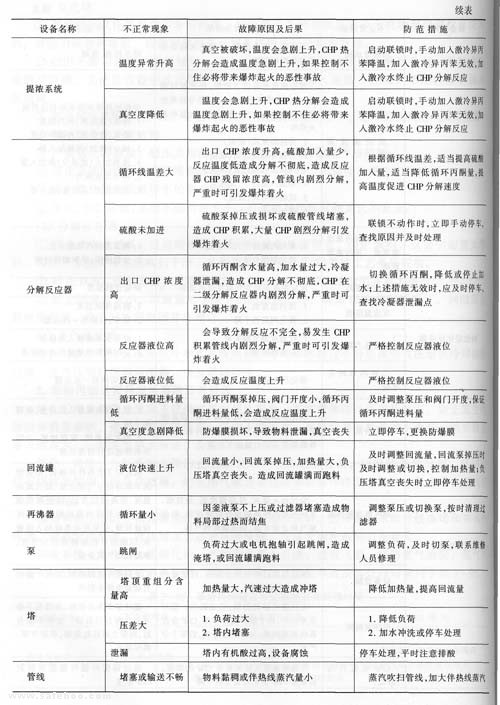 局部的过热,加剧热分解。同时,应特别关注提浓液的冷却,即第二异丙苯汽提塔塔底冷却器效果,严防冷却水未开或冷却效果不好时,造成